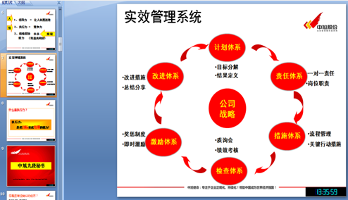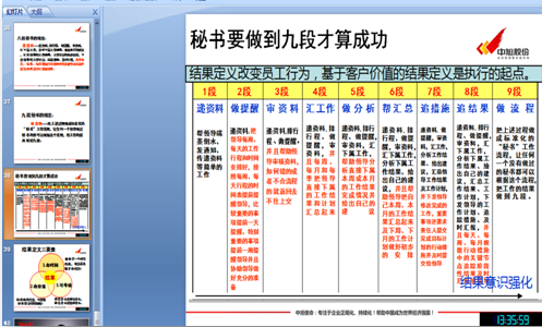 当天下午,在公司领导的带领下,公司所有管理干部都参加了本次难得的学习,冯经理的课程内容翔实,案例丰富,给大家带来了很多新的知识,无论是对时代发展趋势的分析,还是对“九段秘书”不同结果的剖析都是带给大家巨大的启发,冯经理对实效管理体系的见解及执行力重要性的诠释更是让大家的管理意识上升了一个台阶。